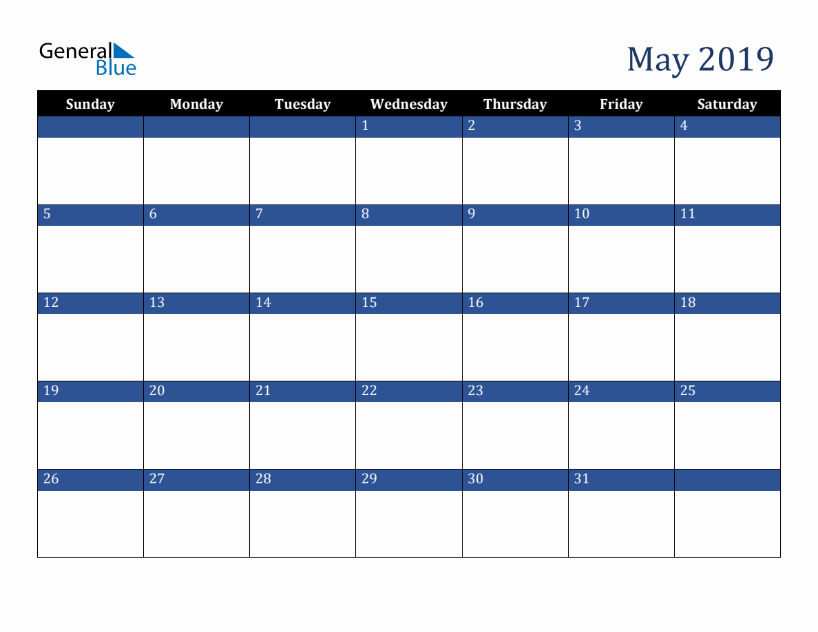 Get Editable May 2019 Calendar Template Blank Word Landscape A4 Page To