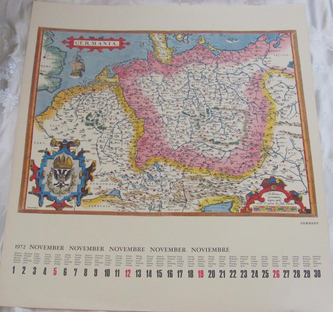 Vintage Cartographic Historical Map Calendar November 1972 // 17 quot X 18