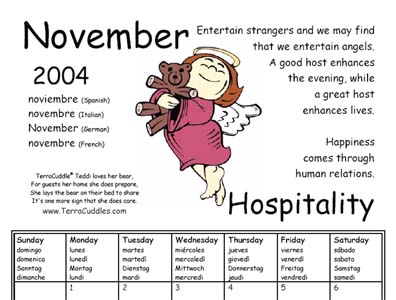 TerraCuddles Calendar November 2004 Hospitality