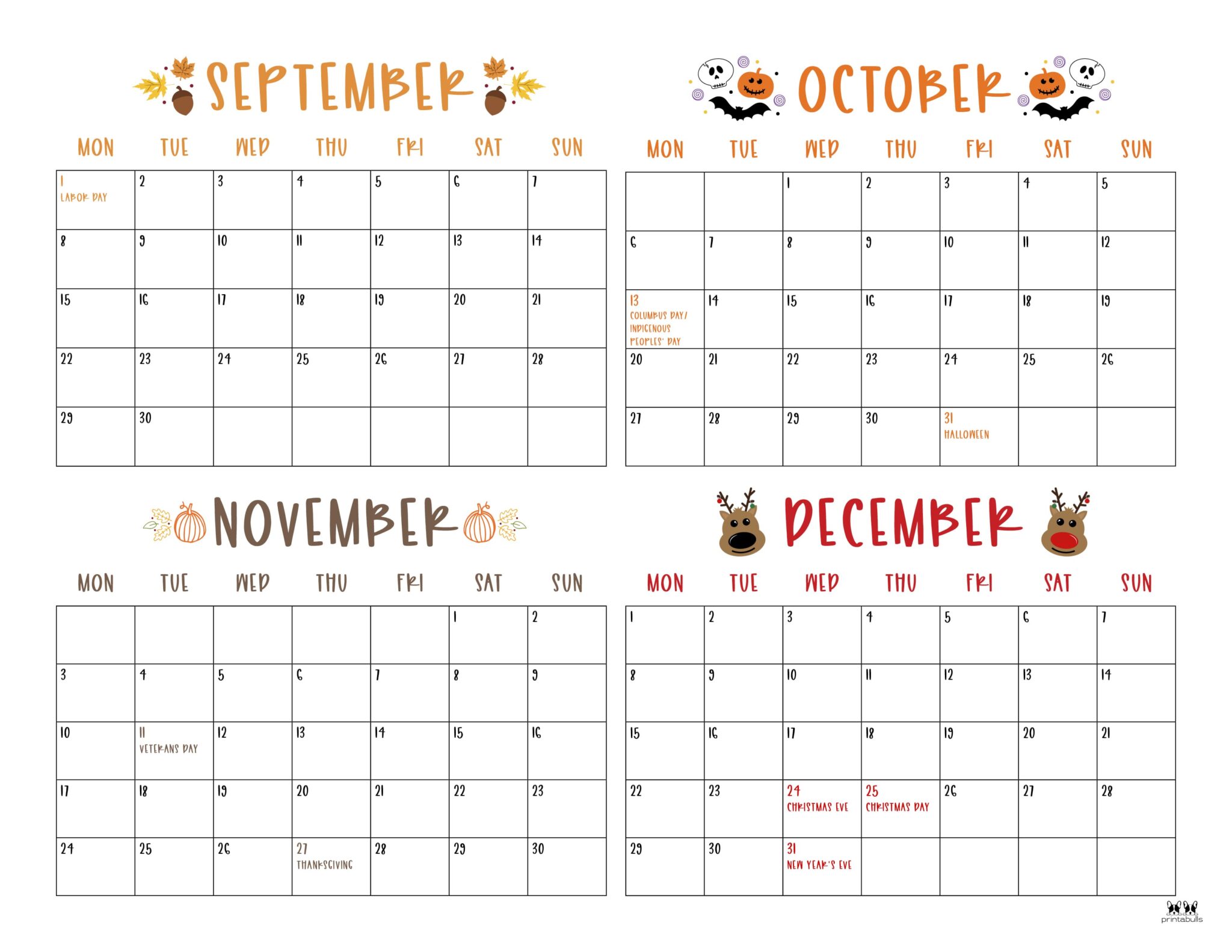 2025 Four Month Calendars 31 FREE Printables Printabulls