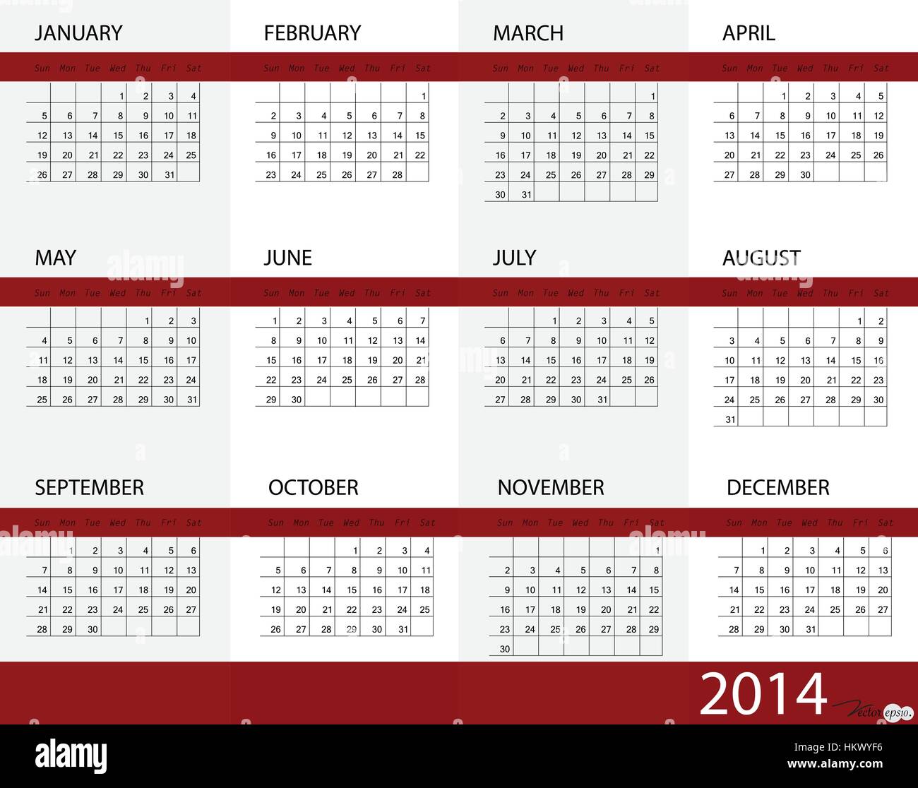Simple 2014 year calendar vector illustration Stock Vector Image Art