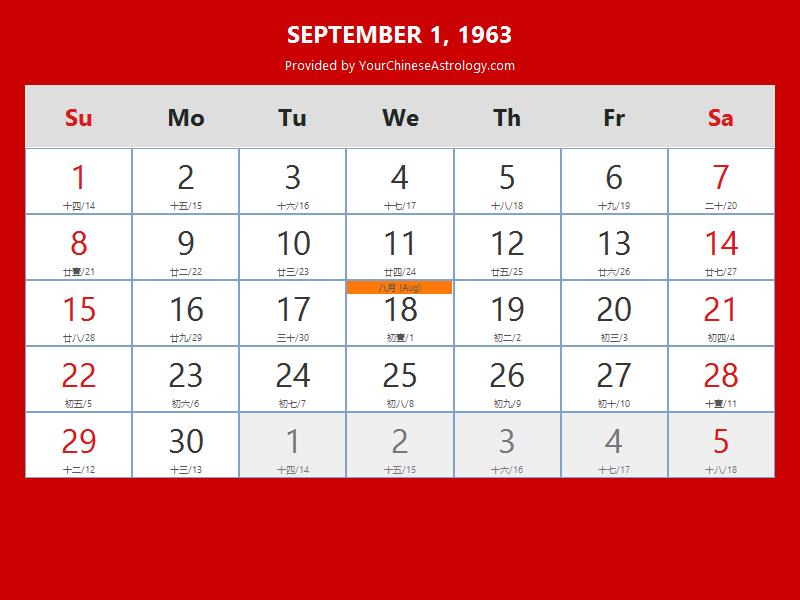 Chinese Calendar Sep 01 1963: Auspicious Things to Do and Hours Bazi