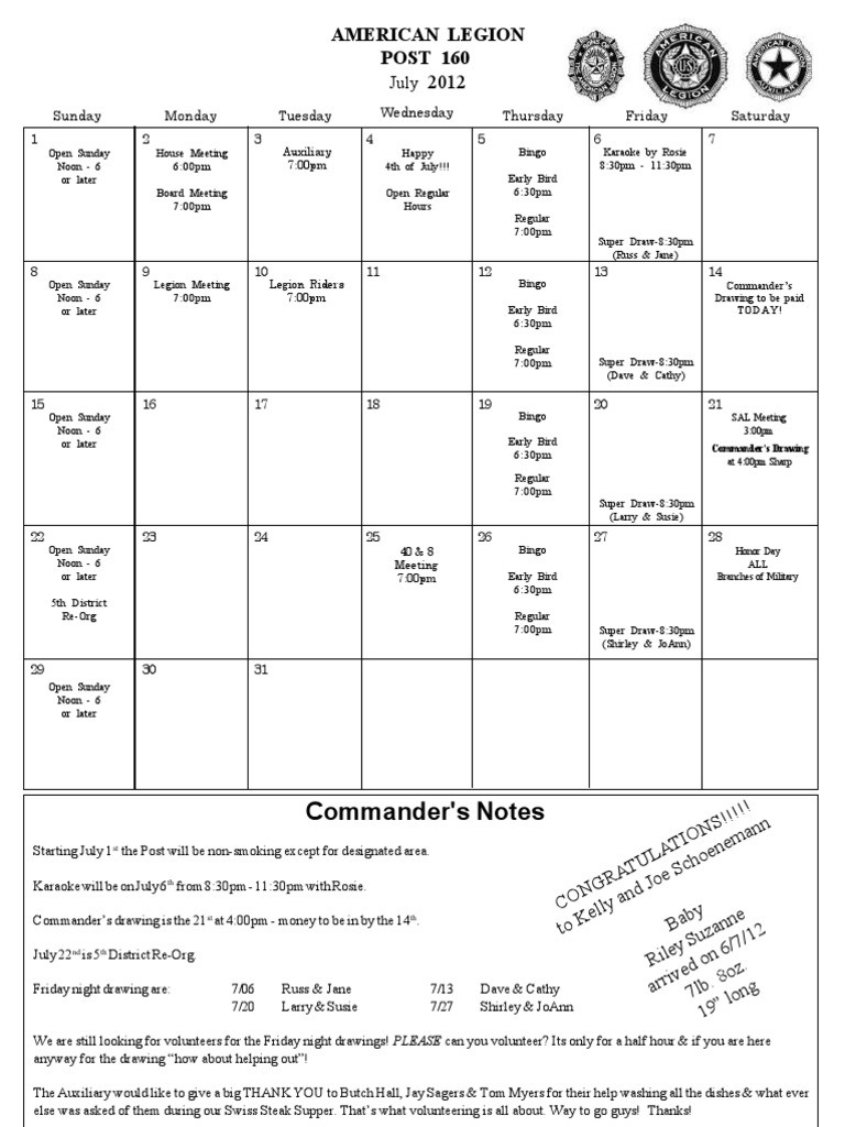 Legion Calendar July 2012 PDF French Fries Foods
