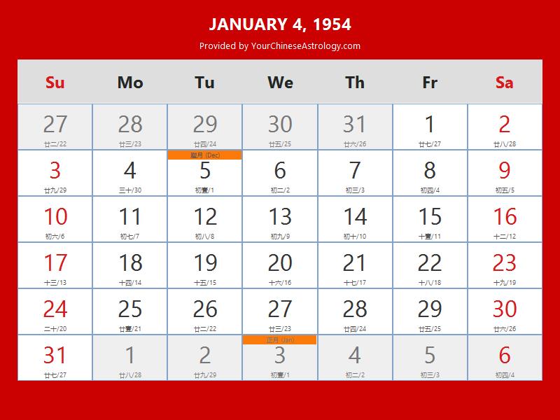 Chinese Calendar Jan 04 1954: Auspicious Things to Do and Hours Bazi