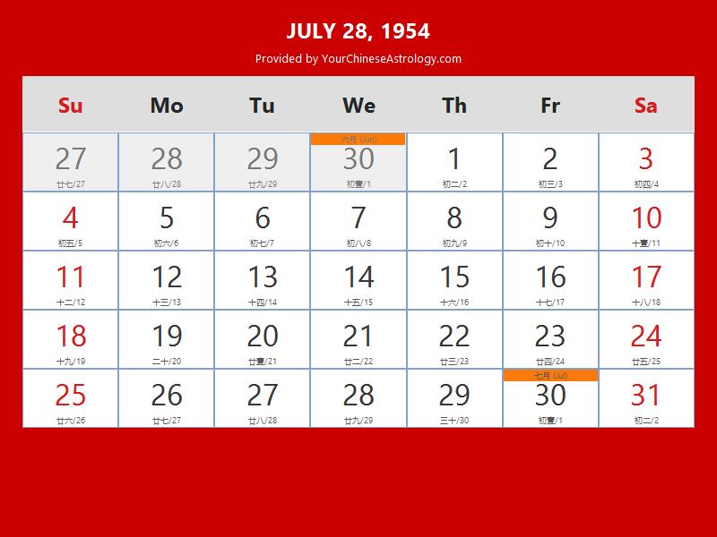 Chinese Calendar Jul 28 1954: Auspicious Things to Do and Hours Bazi