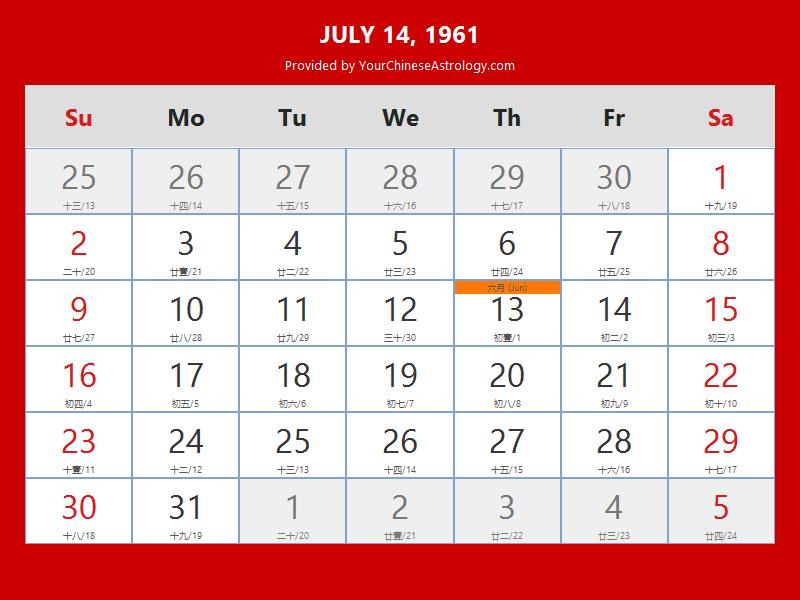 Chinese Calendar Jul 14 1961: Auspicious Things to Do and Hours Bazi