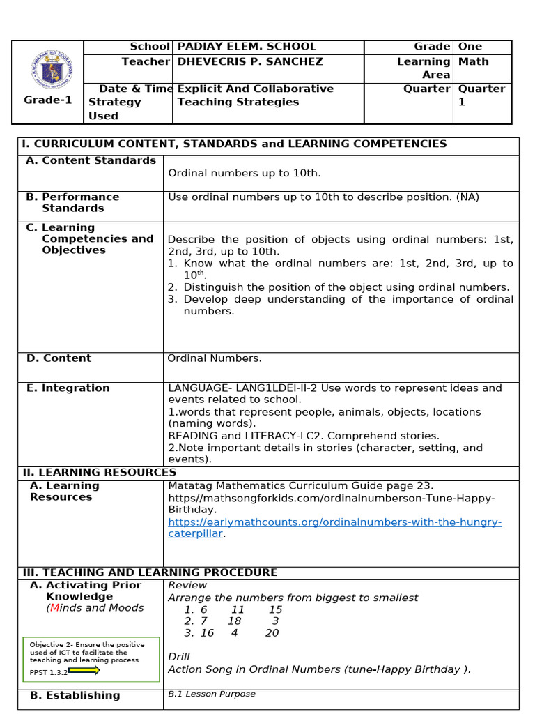 Detailed Lesson Plan Based On Matatag Curriculum Math