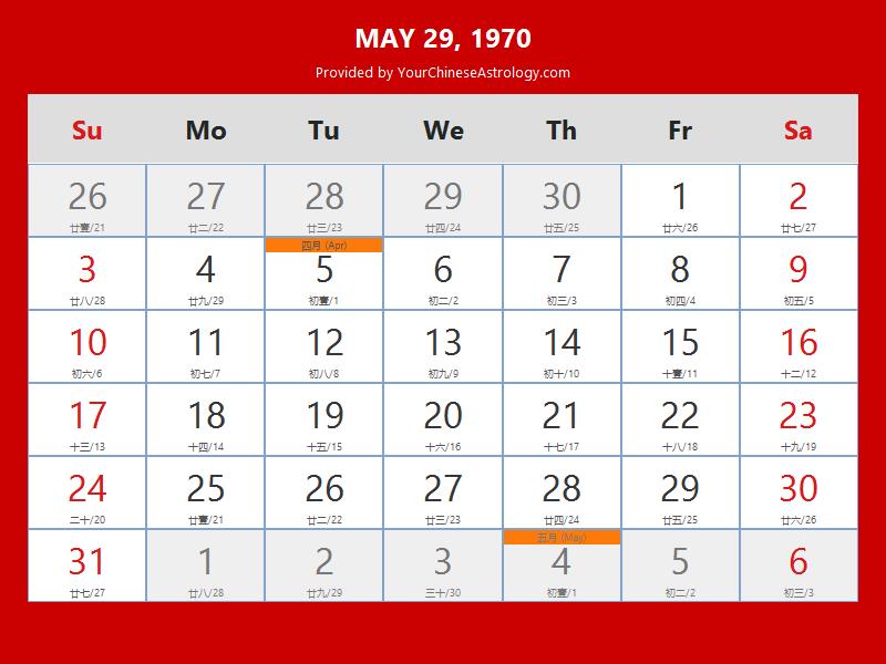 Chinese Calendar May 29 1970: Auspicious Things to Do and Hours Bazi