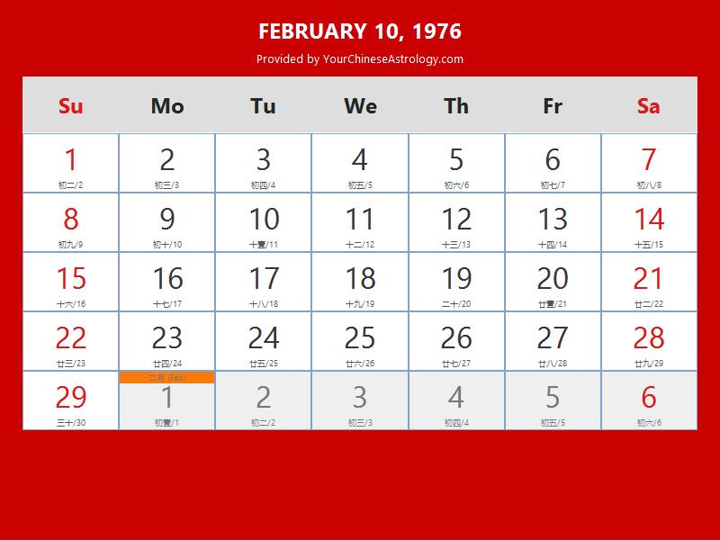 Chinese Calendar Feb 10 1976: Auspicious Things to Do and Hours Bazi