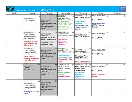 Calendar May 2016