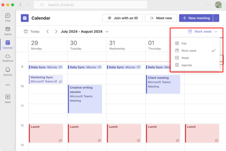Calendar Microsoft Teams