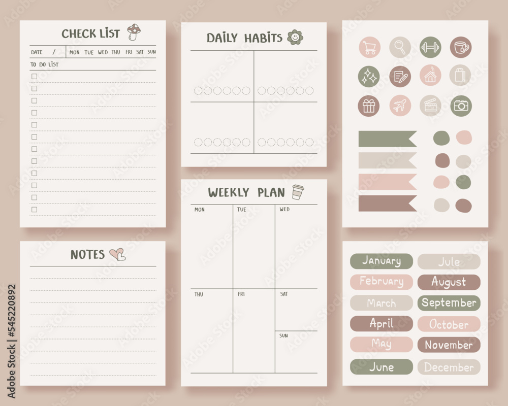 Minimalist Planner Pages Templates Calendar Month Stickers Check List