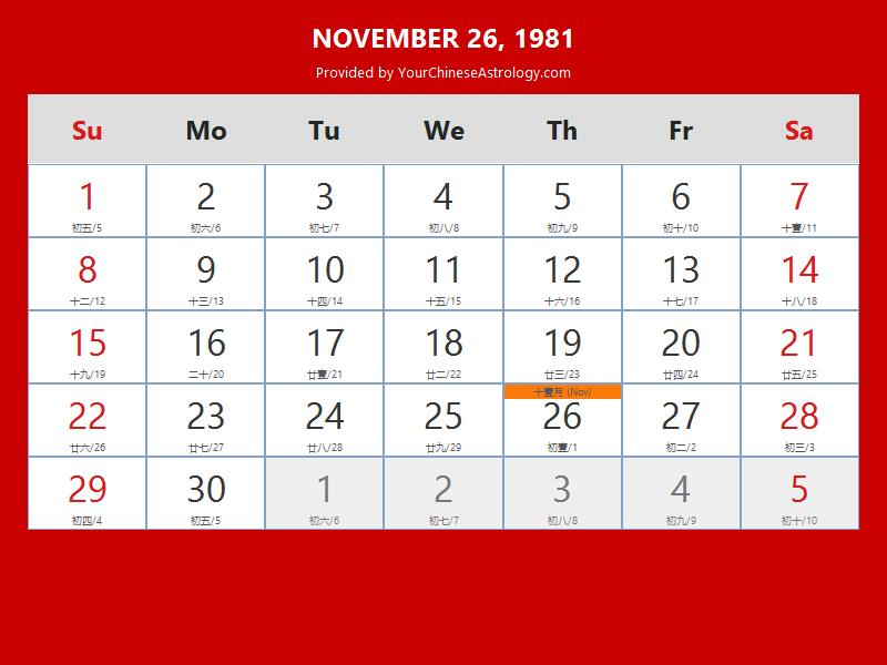 Chinese Calendar Nov 26 1981: Auspicious Things to Do and Hours Bazi