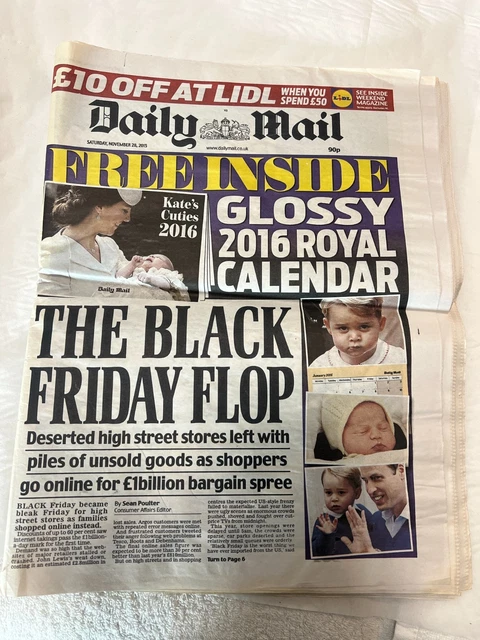 DAILY MAIL NEWSPAPER November 28 2015 Royal Calender £5 44