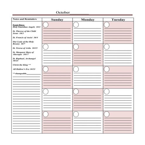 Planning Calendar: October PPT