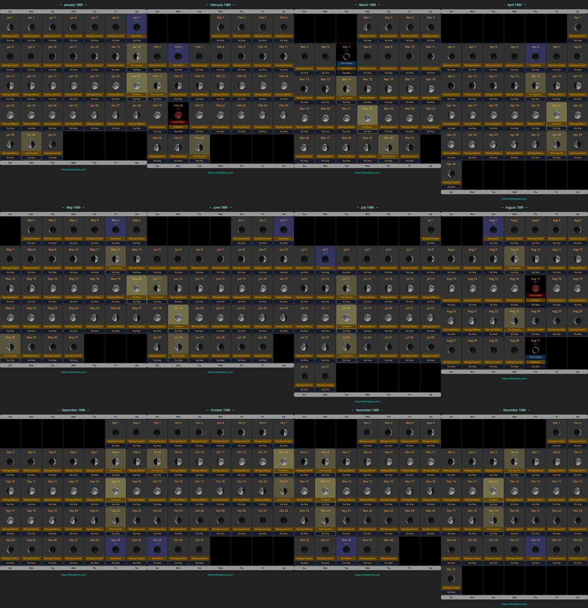 Moon Calendar 1989 TheSkyLive