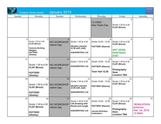 August 2015 Program Calendar PPT