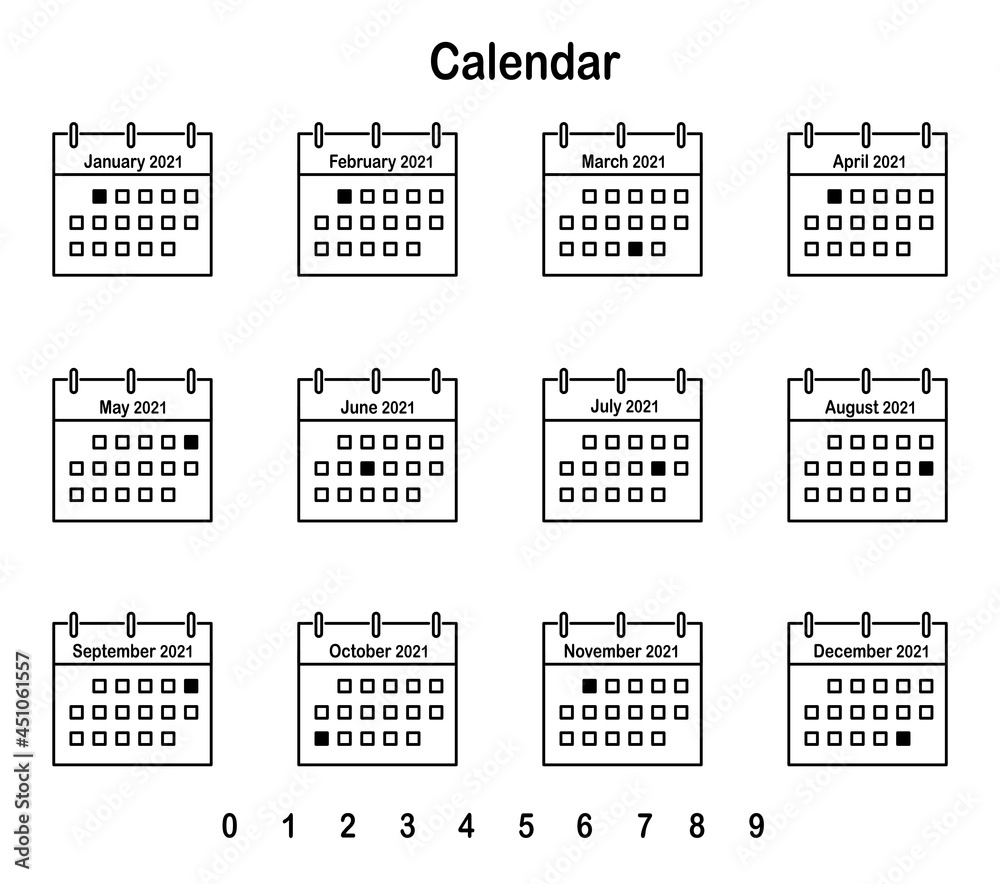 Calendar outline and colorful silhouette 56107004 Vector Art at Vecteezy