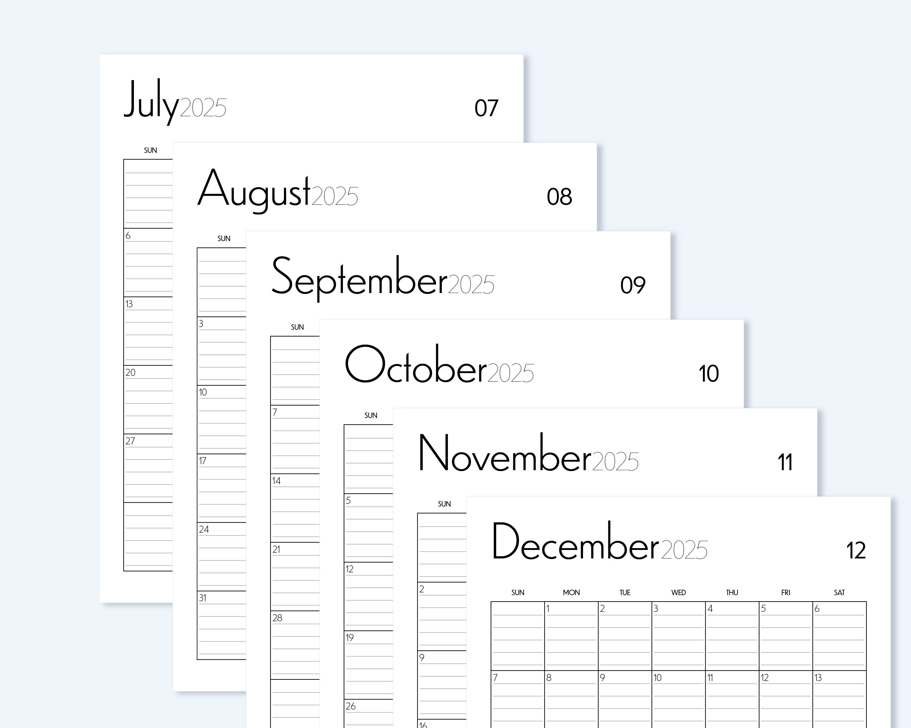 2025 Monthly Calendar Printable Insert Minimalist Lined Planner Page
