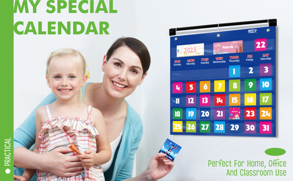 Calendar Pocket Chart Teaching Calendar Festival with 89 Cards 3 Hooks