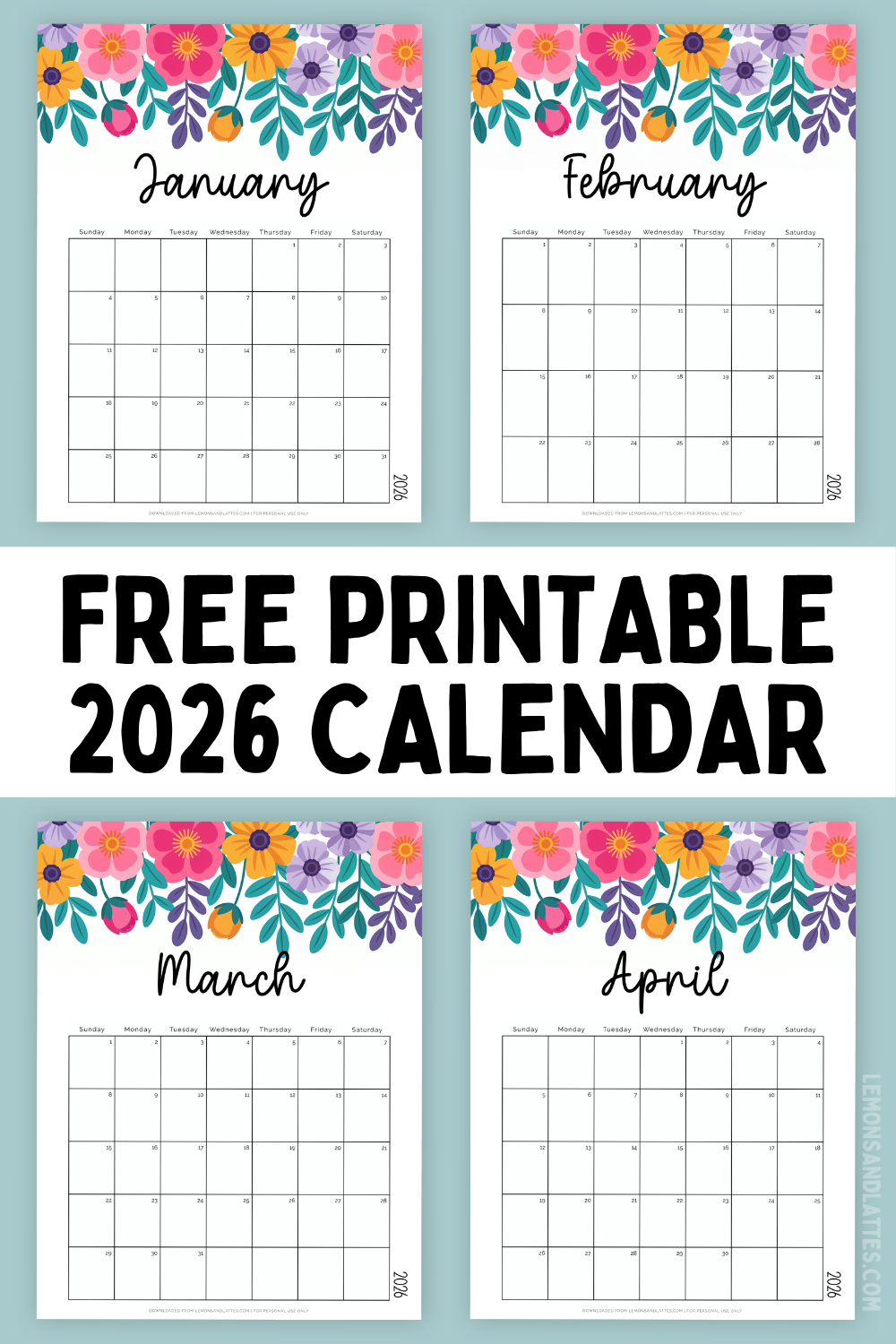 Free Printable 2026 Monthly Calendars (Cute Floral Design)