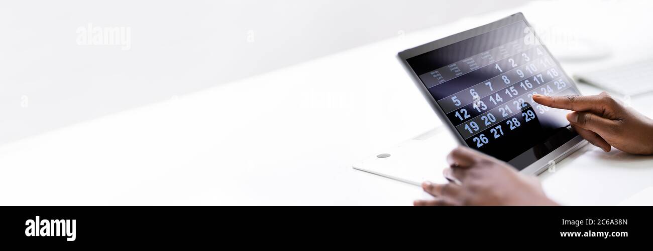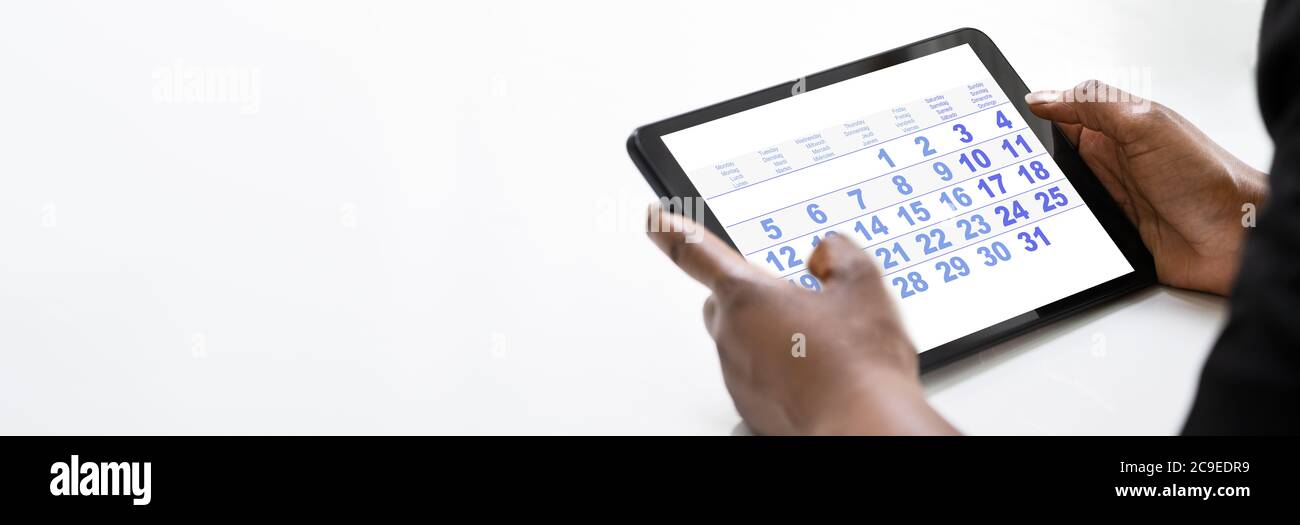 African Woman Using Agenda Calendar Schedule App On Tablet Computer
