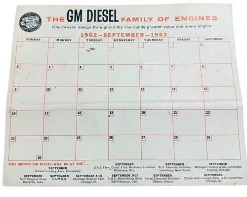 GM diesel 1962 September calendar month family of engines eBay