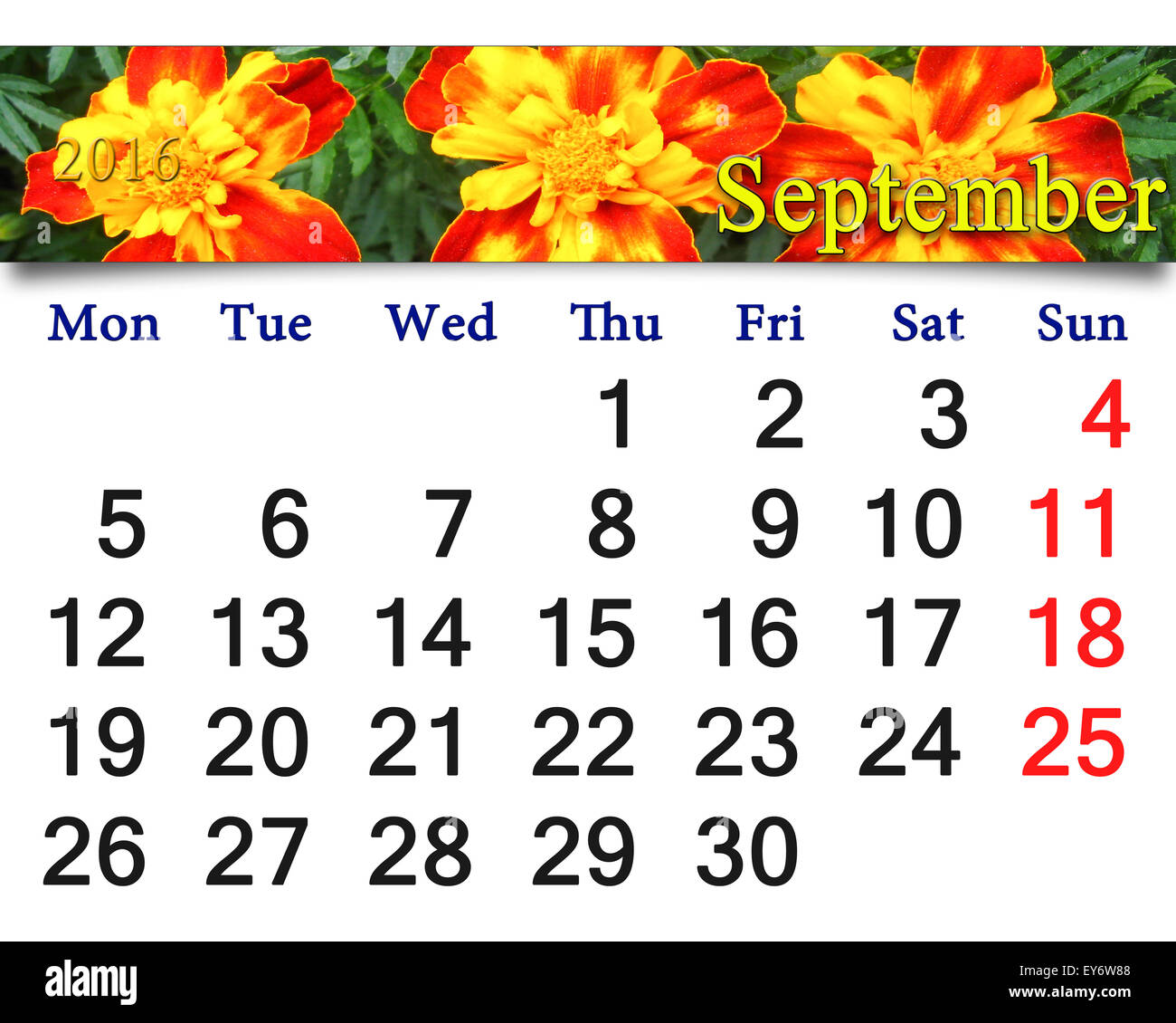 Calendar september 2016 (clipping path included Stock Photo Alamy