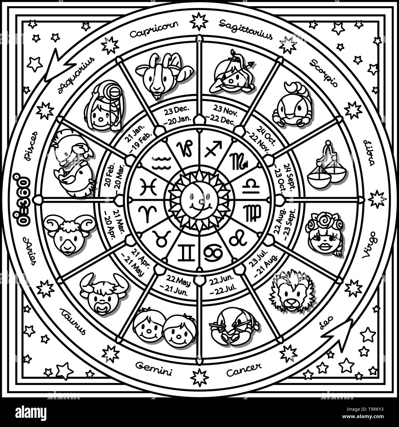 Zodiac Calendar Horoscope Signs with Month Dates Star Constellation