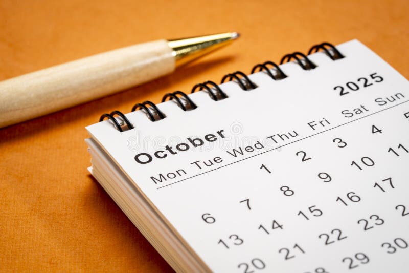 October 2025 Spiral Desktop Calendar Time and Business Concept Stock