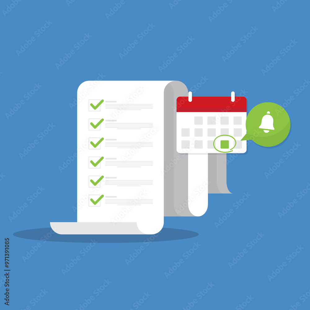 Check list document with a notification and calendar paper check list