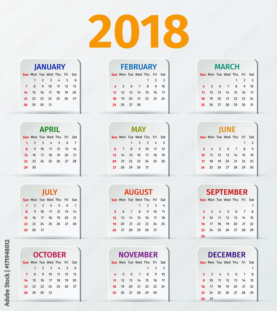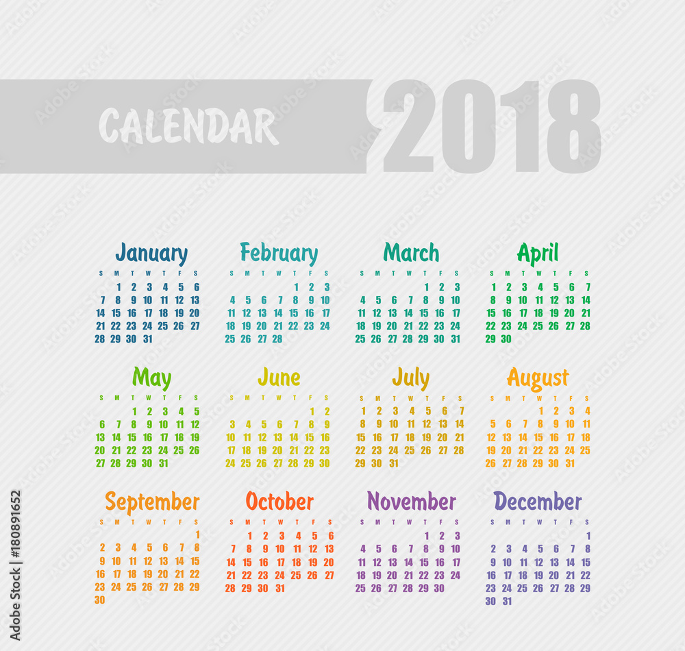 Simple 2018 year calendar week starts on Sunday Stock Vector Adobe