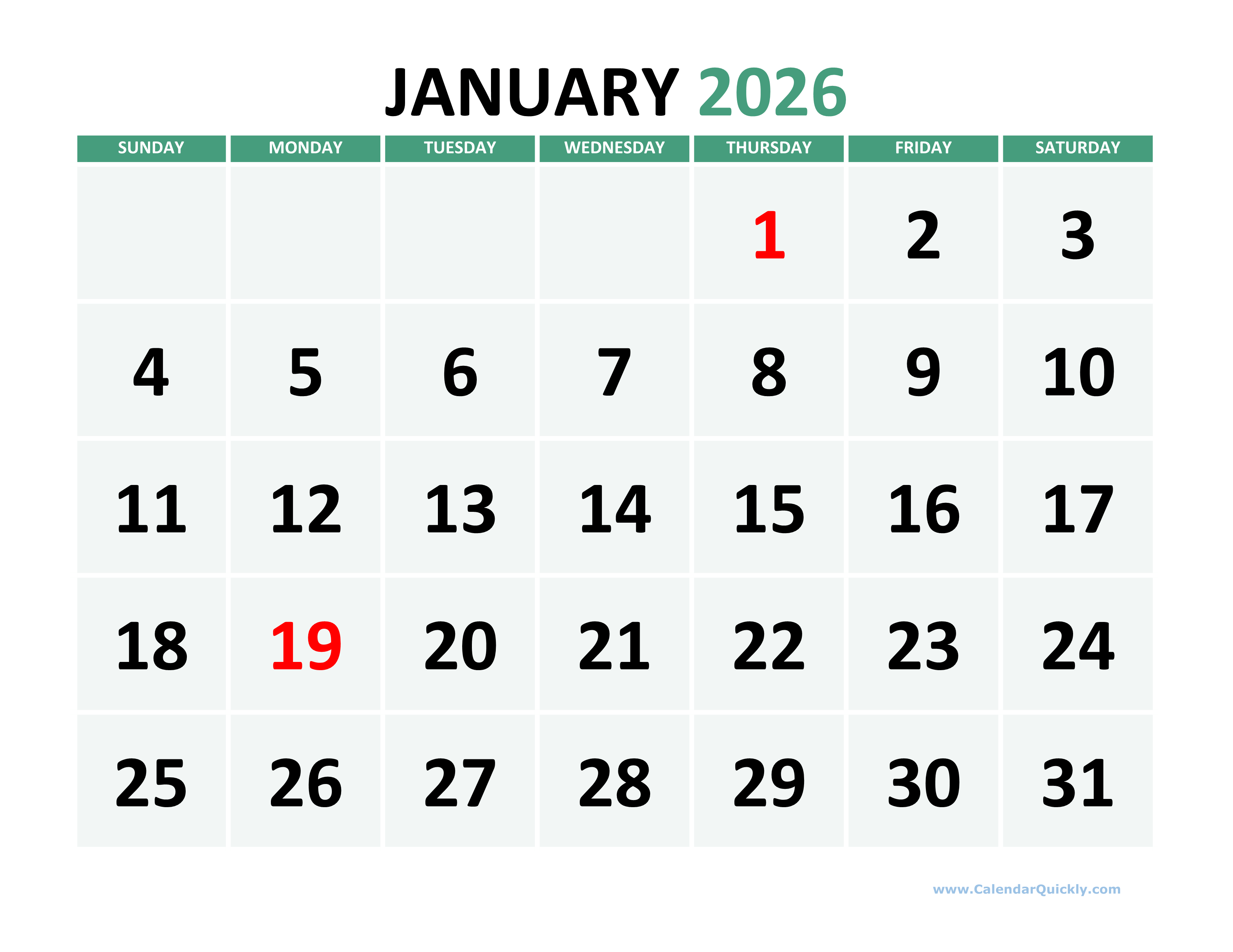 Large Printable 2026 Calendar Calendar Quickly