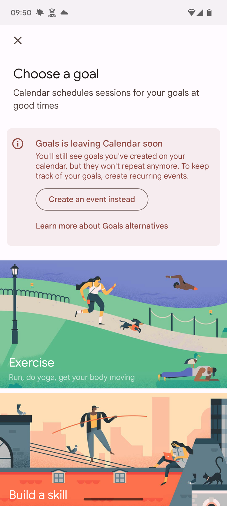 Goals are officially leaving Google Calendar