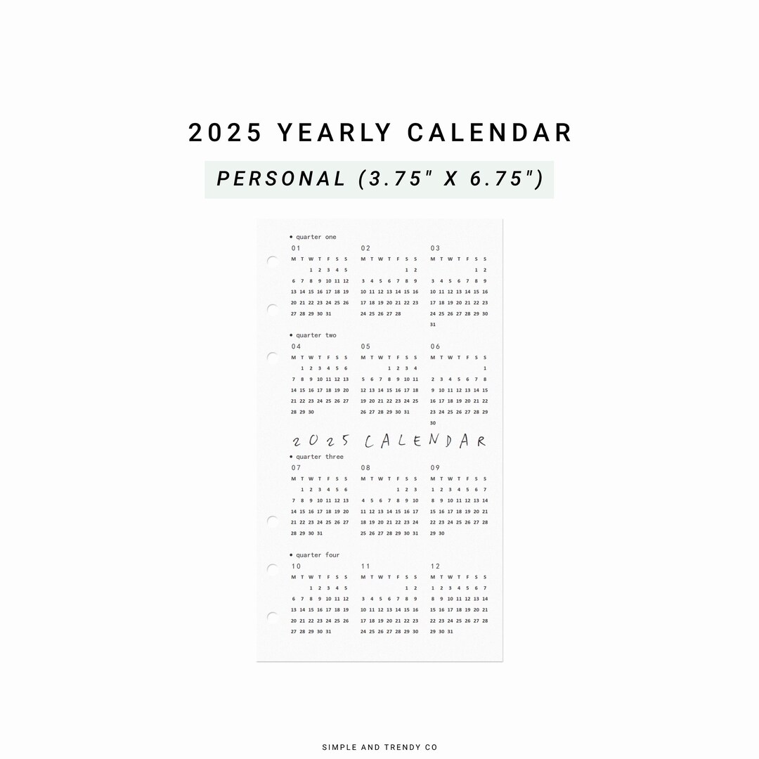 2025 Calendar Personal Planner Inserts 2025 Year at A Glance 2025