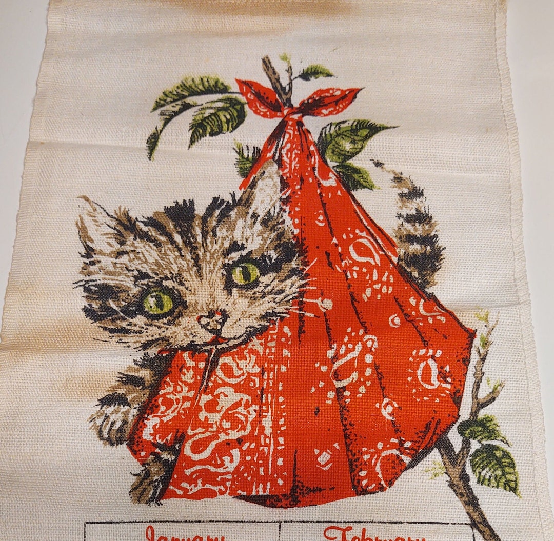 1981 Kitten in a Hobo Bindle Calendar Year 1981 Vintage Kitchen Towel