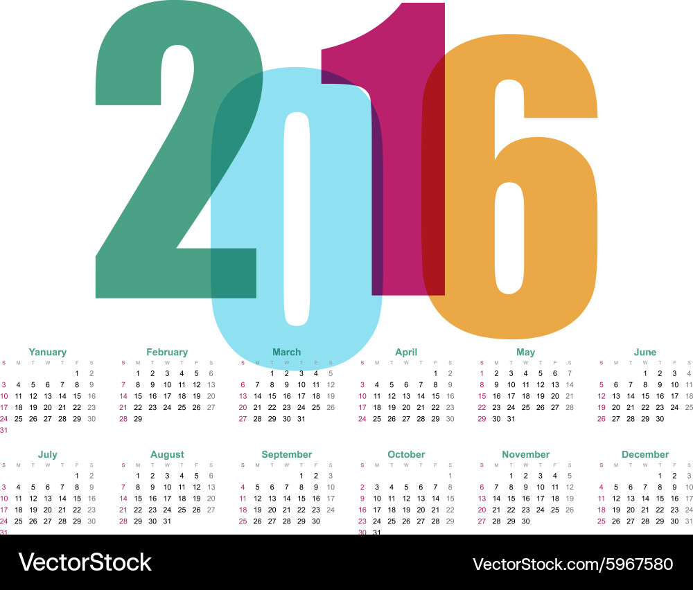 Jahr Kalender Lizenzfreies Vektorbild VectorStock