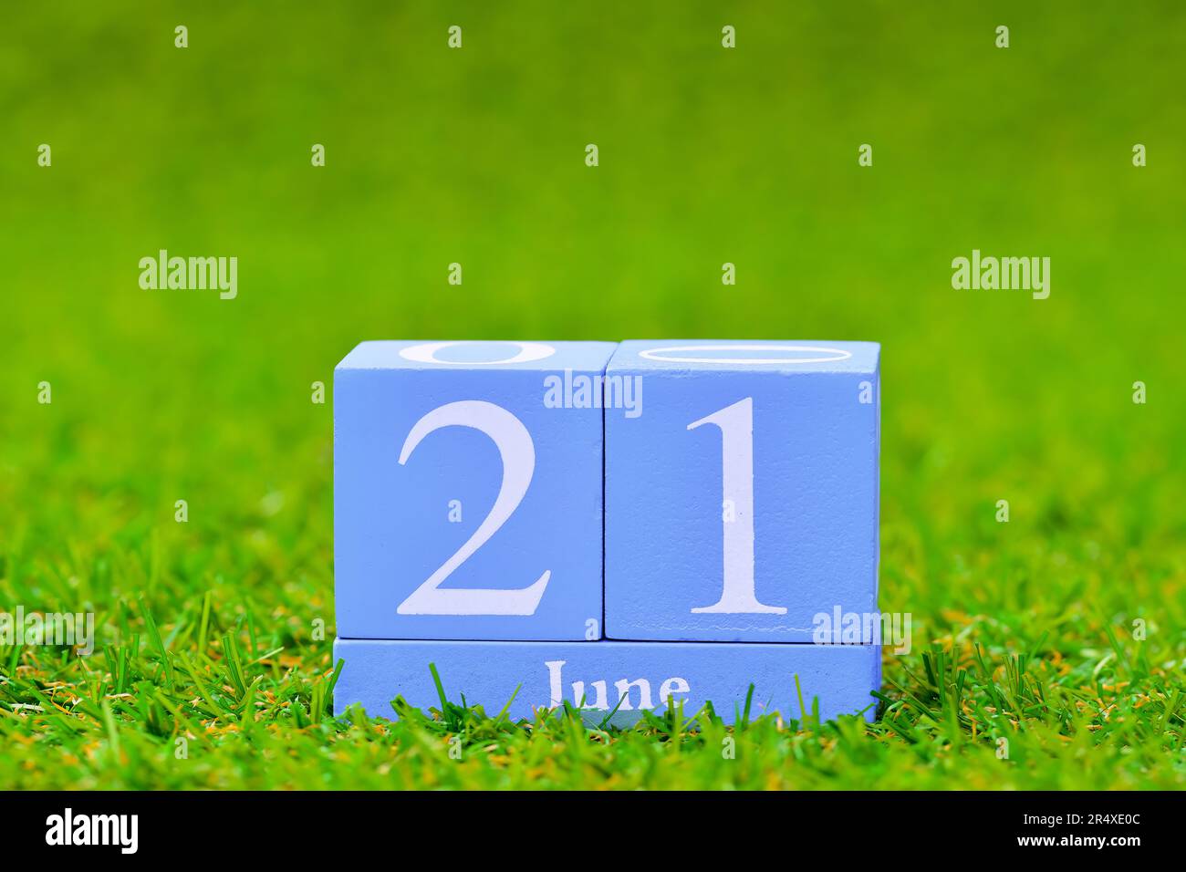 June 21 date on blue block calender first day of summer green grass