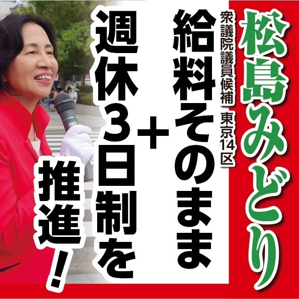 【給料そのまま+週休3日制を推進】 1987年の労働基準法改正(週休2日制実現)以来の本気の労 松島みどり(マツシマミドリ