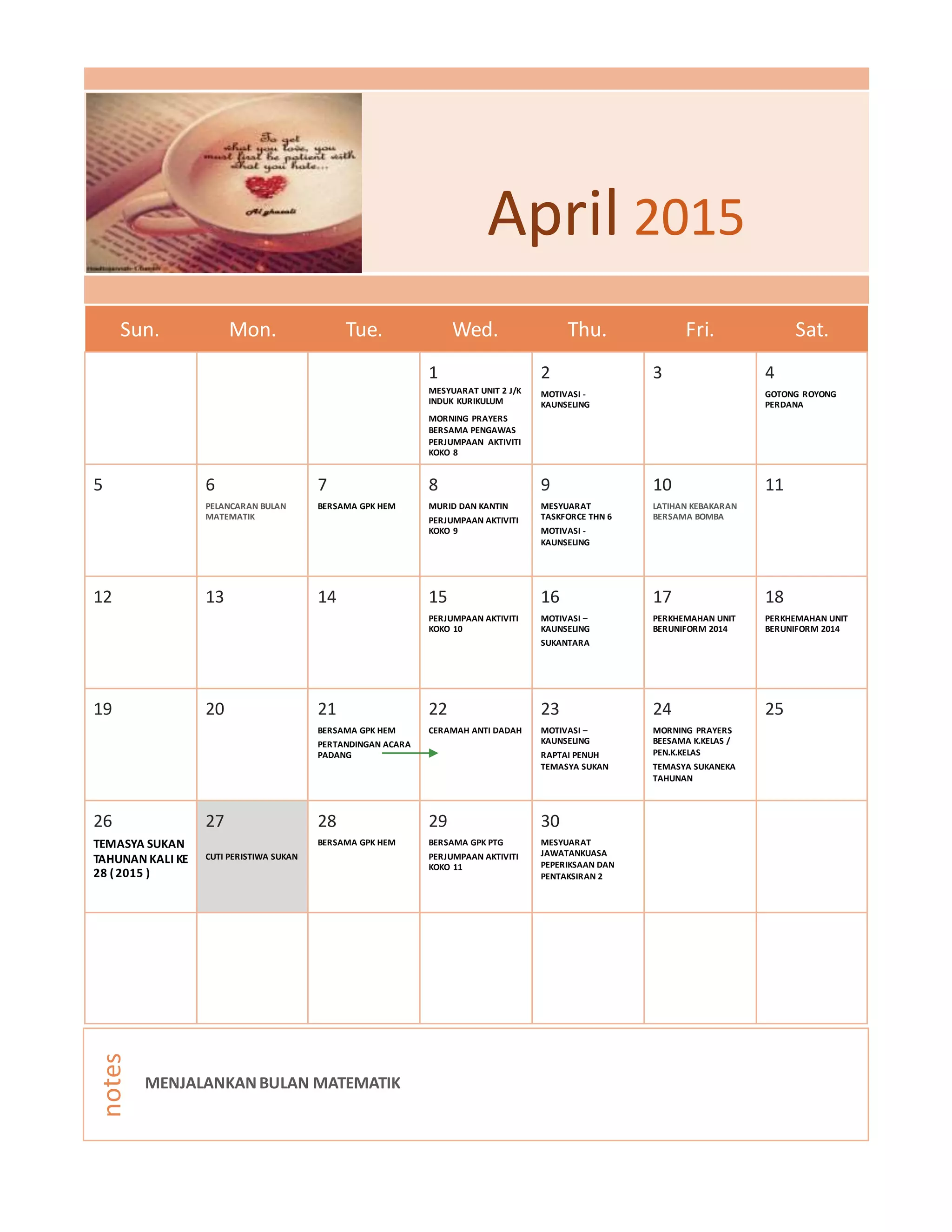 Calender april 2015 PDF