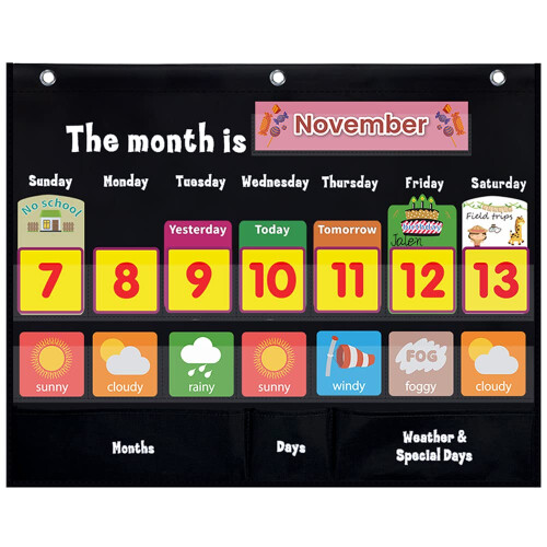 Classroom Calendar Pocket Chart with 114 Cards Kid Monthly Calender