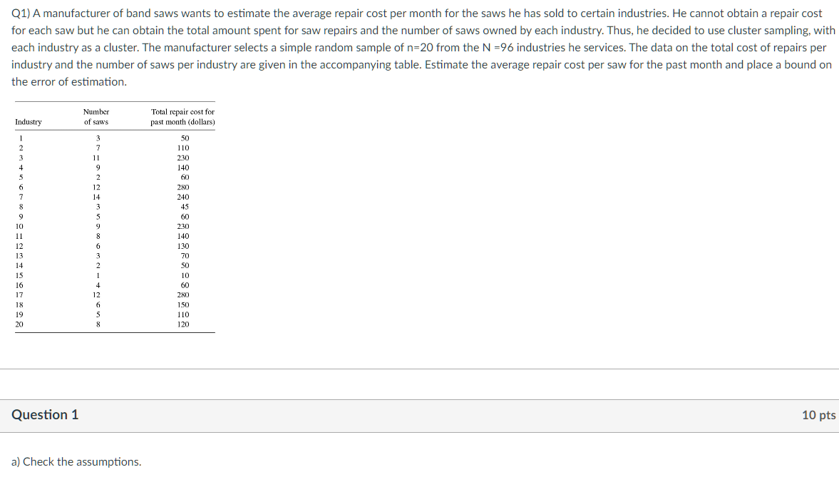 Solved Q1) A manufacturer of band saws wants to estimate the Chegg com