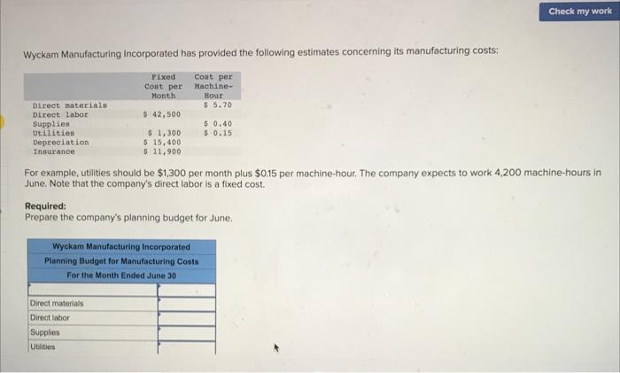 Solved Wyckam Manufacturing incorporated has provided the Chegg com