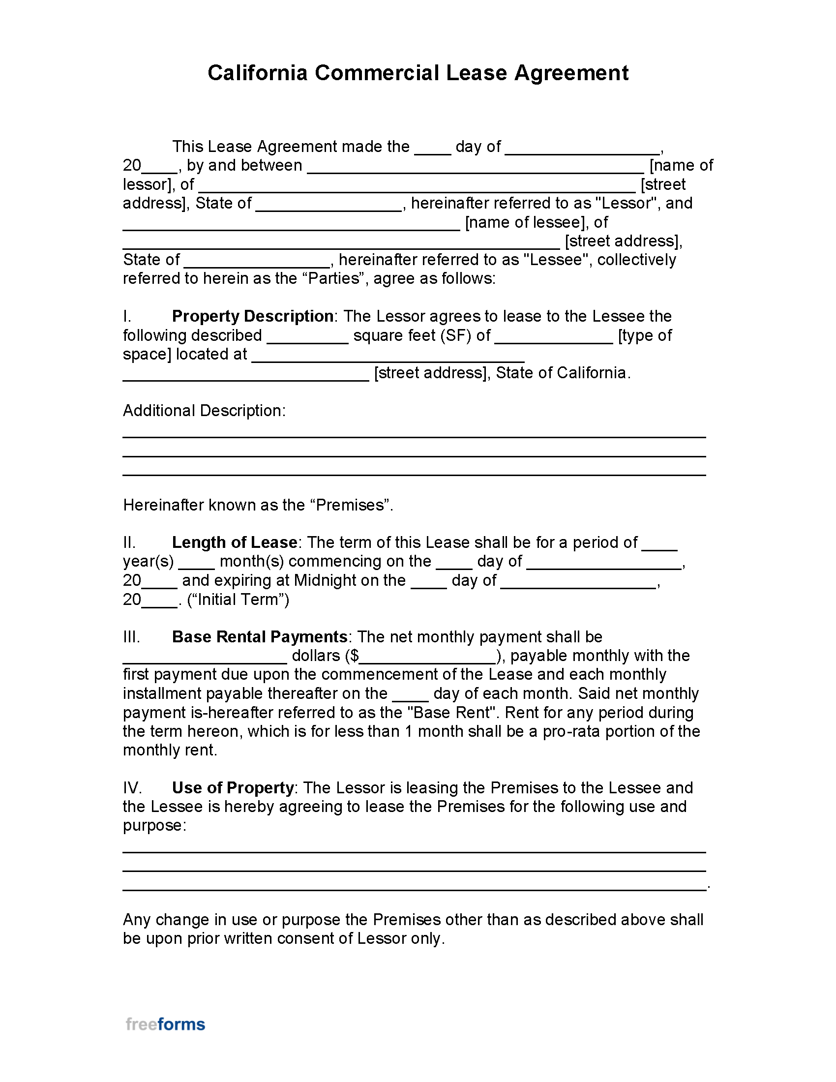 Free California Commercial Lease Agreement Template PDF Word eForms