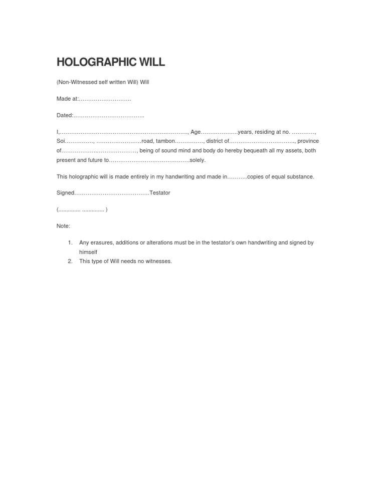Sample HOLOGRAPHIC WILL PDF