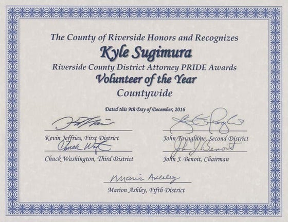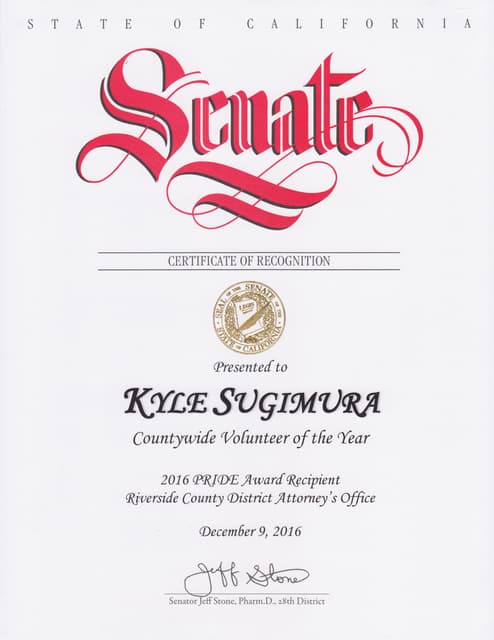 I received a Certificate of Recognition from the California Legislature