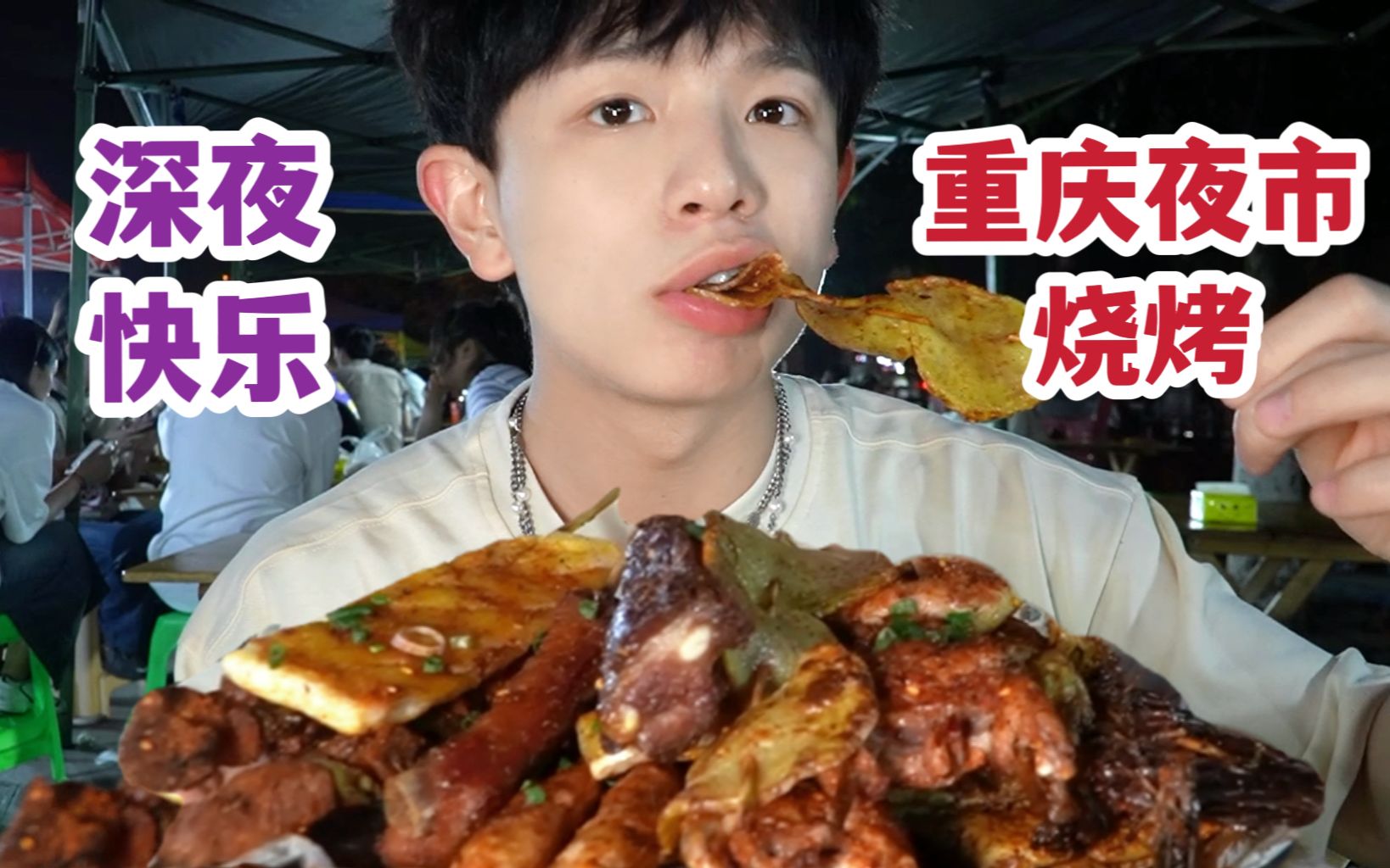 浙江小伙深夜去重庆夜市吃烧烤,第一次吃到正宗烤苕皮太满足啦 ! 超开心的大嘴猴 超开心的大嘴猴 哔哩哔哩视频