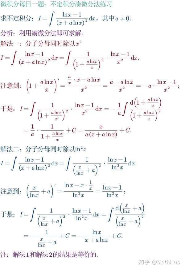 微积分每日一题3 110:不定积分凑微分法练习 知乎