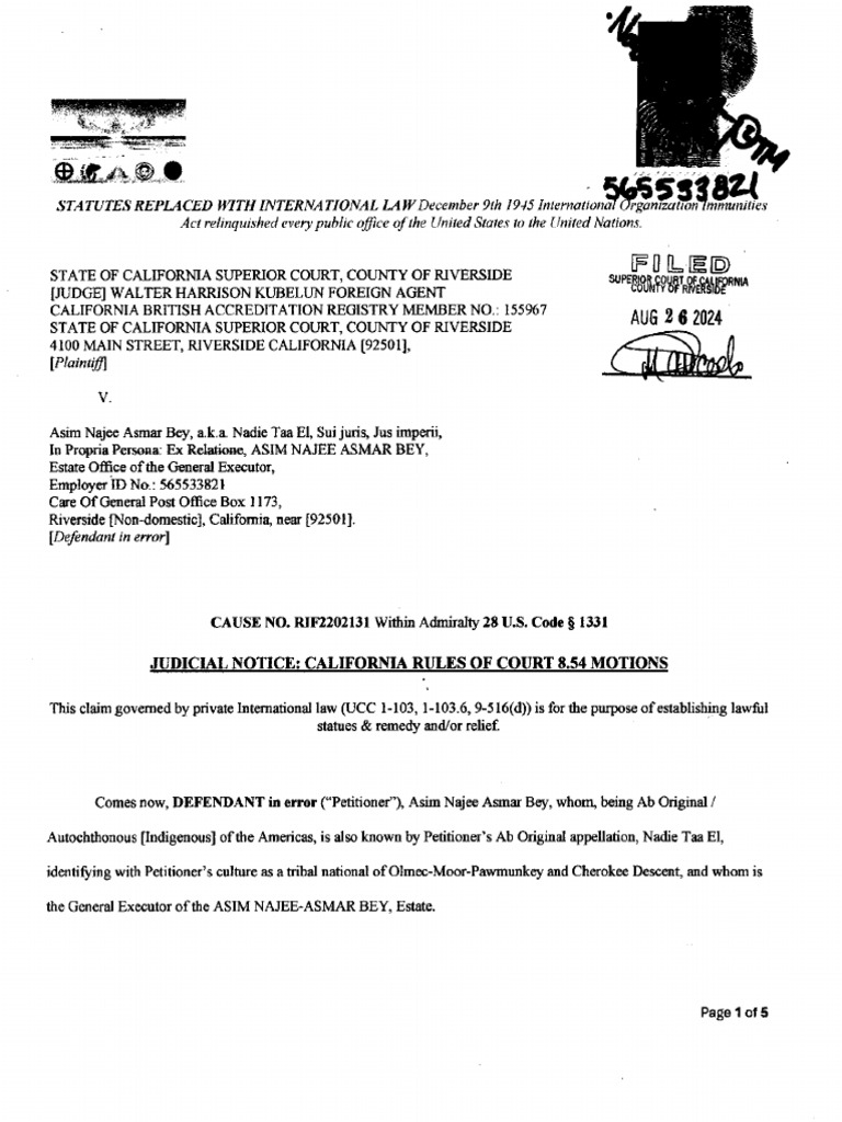 JUDICIAL NOTICE: CALIFORNIA RULES OF COURT 8 54 MOTIONS FILED INTO