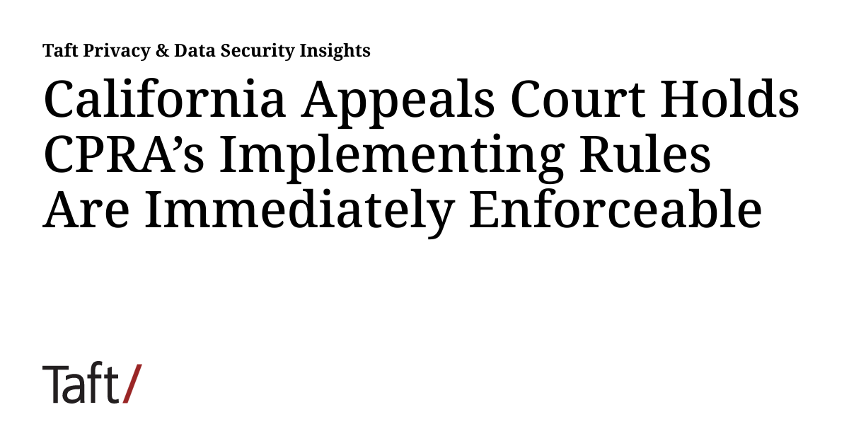 California Appeals Court Holds CPRA s Implementing Rules Are